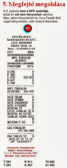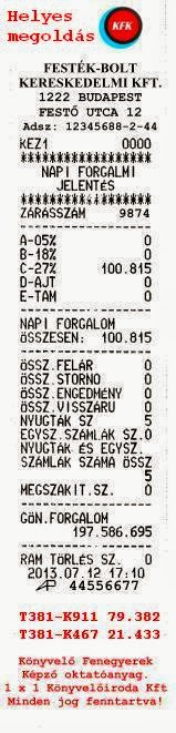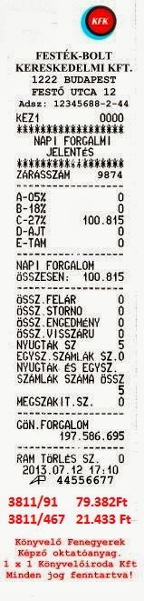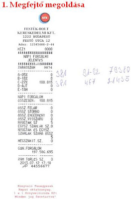 3.számla nem jó, mert ha Festék-Bolt szemszögéből könyvelünk is, a pénztárba akkor is a bruttó összeget vételezzük be és nem külön a nettó + ÁFA. Hisz a nyugta végösszege is bruttó összeg.