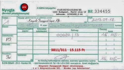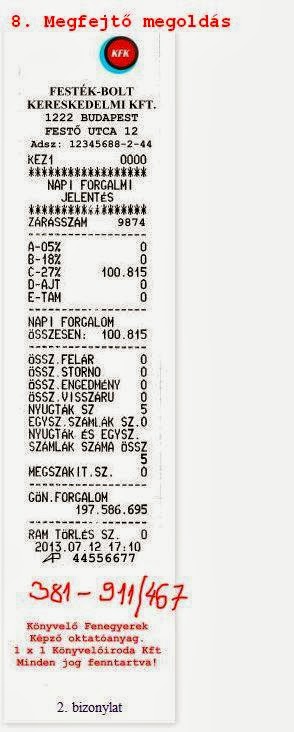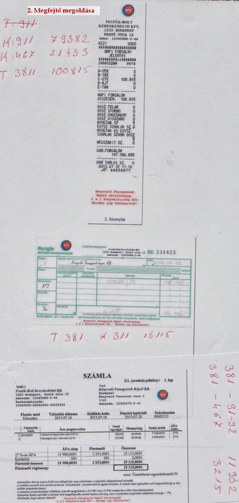 1. Könyvelő Fenegyerek képző könyvelésében szerepeltetendő Festék-Boltos számlát a nyugtával helyesen párosította és könyvelte a 3, 5, 8 megfejtést beküldő.